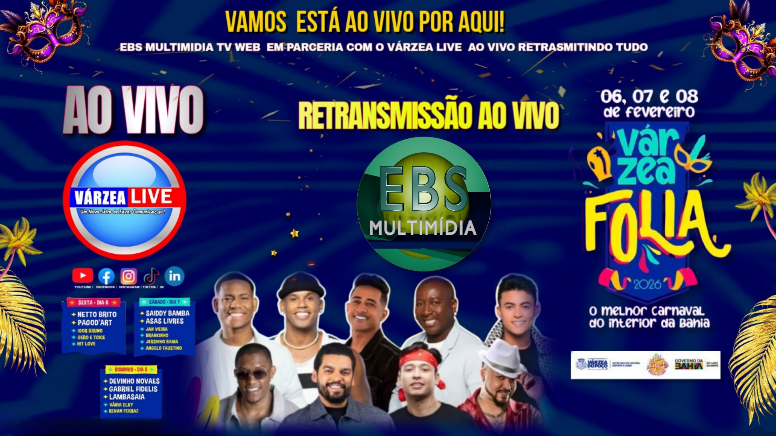 Em um marco importante para a comunicação e para a difusão cultural da região, o canal Várzea Live Oficial — conhecido por sua atuação nas transmissões ao vivo de eventos esportivos e culturais via YouTube e redes sociais — anuncia uma parceria estratégica com o portal ebstv.top para a retransmissão do tradicional Carnaval Várzea Folia 2026.
